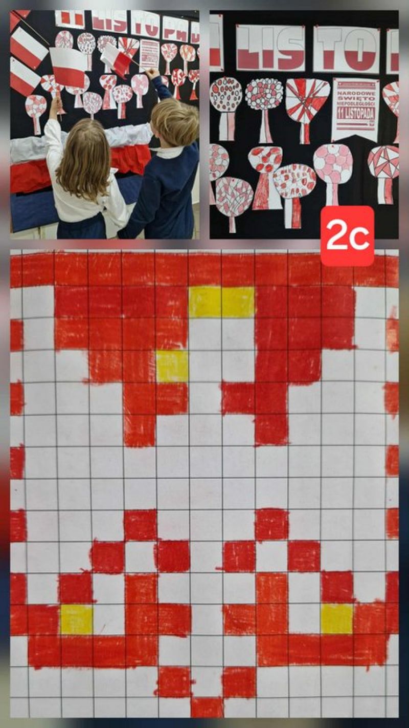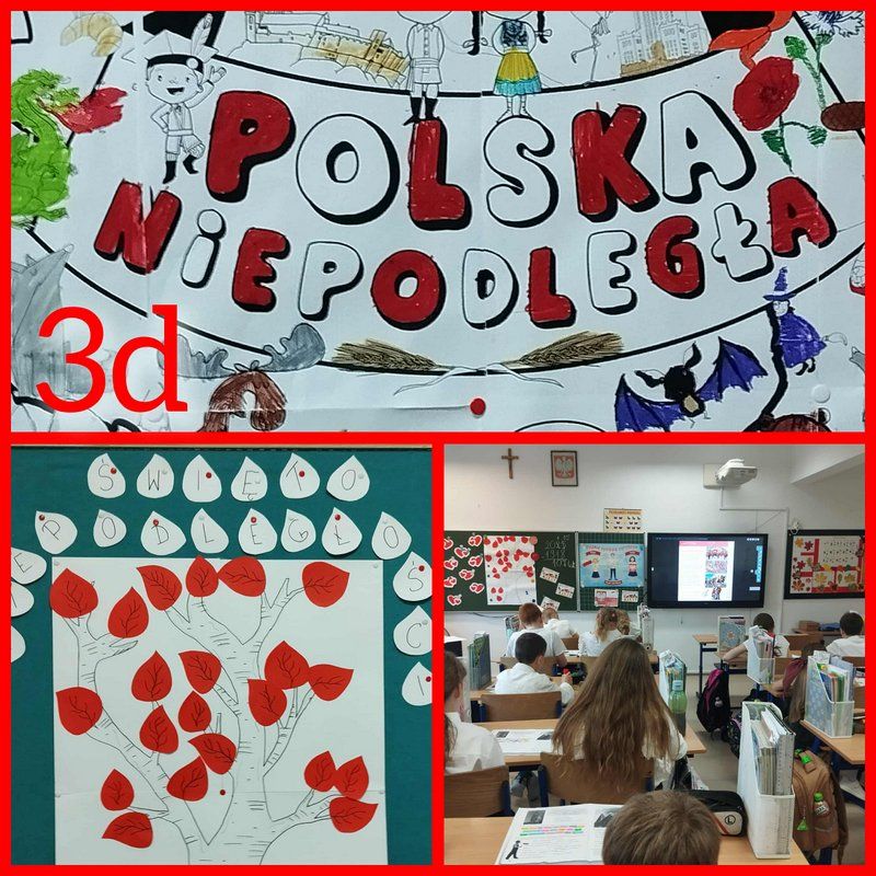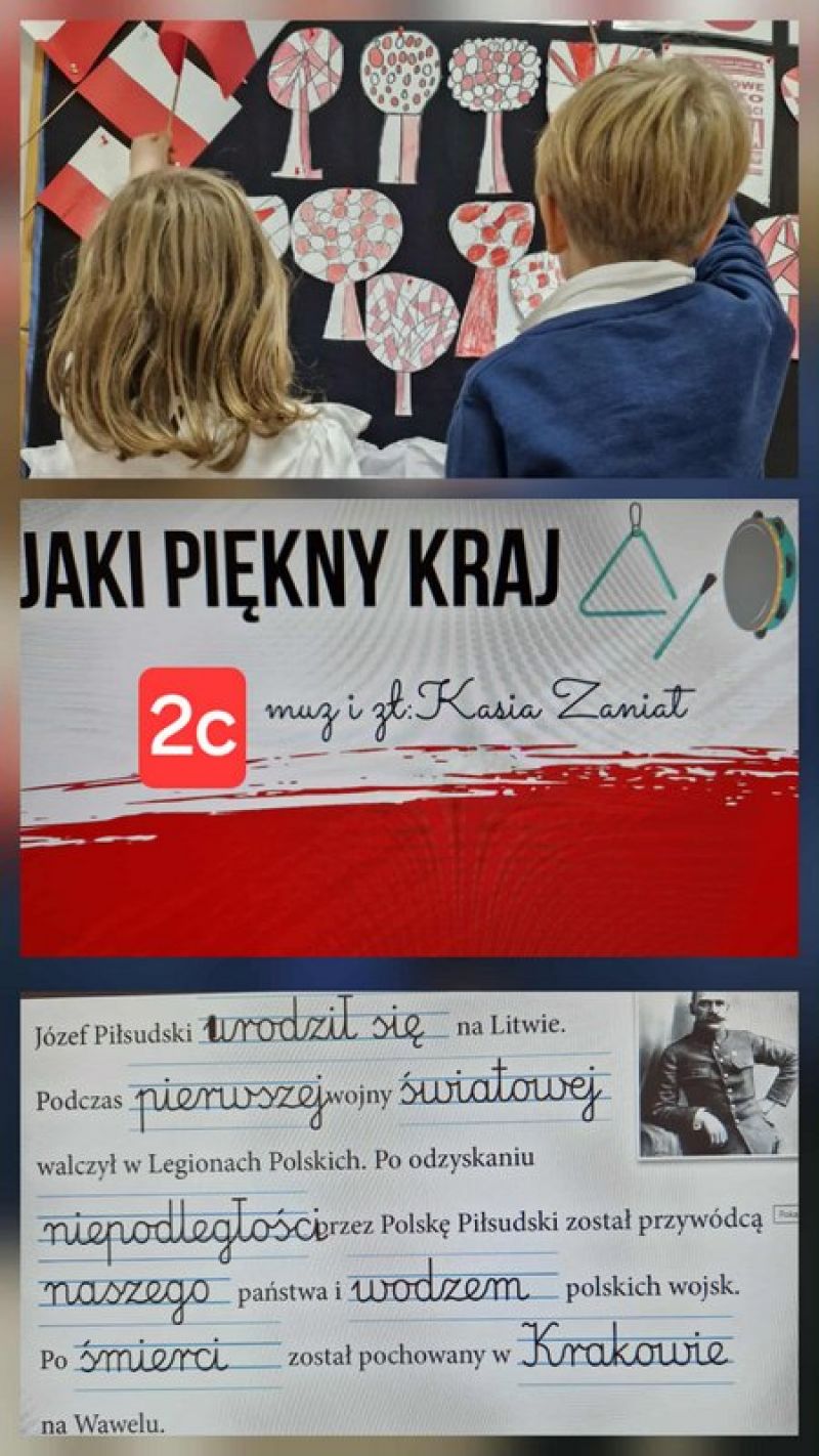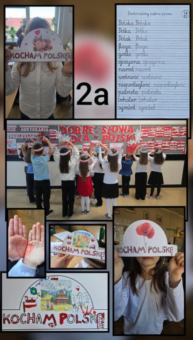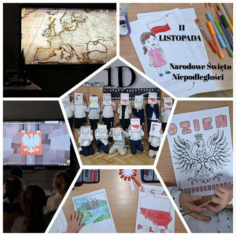 Wszyscy odświętnie ubrani w stroje galowe wspólnie odśpiewali hymn Polski, a następnie uczestniczyli w koncercie pieśni patriotycznych w wykonaniu chóru szkolnego. W ramach dnia projektowego dzieci w klasach podejmowały wiele aktywności związanych z rocznicą odzyskania niepodległości. Wykonywały kotyliony, prace plastyczne przedstawiające symbole narodowe, którymi udekorowały klasy i szkolne korytarze. Wszędzie widać było biało- czerwone barwy. Oglądały filmiki o historii odzyskania niepodległości przez Polskę, śpiewały piosenki patriotyczne. Dzień ten stał się okazją do przypomnienia wydarzeń związanych z ważnym momentem w dziejach naszej Ojczyzny. Był dla wszystkich wspaniałą lekcją historii i patriotyzmu.