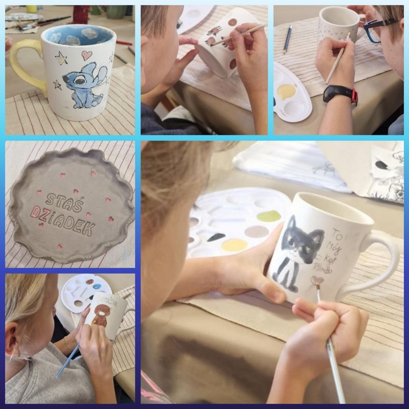 W dniu 20 listopada klasa 3d uczestniczyła w warsztatach ceramicznych w Fundacji Artystycznej "Wylepiarnia" w Legionowie. Uczniowie poznali różne metody dekorowania kubków, w tym tworzenie wzorów, malowanie pędzlami oraz gąbkami. W pracowni formowali talerze z bryły gliny, pod okiem instruktorki pani Ani. Na koniec zajęć ceramicznych dowiedzieli się, jak przygotować swoje prace do suszenia,a następnie do wpału w piecu. Szczególne podziękowania należą się mamie Stasia za wygranie bezpłatnych warsztatów ceramicznych w profesjonalnej pracowni dla całej klasy 3d. Dziękujemy !