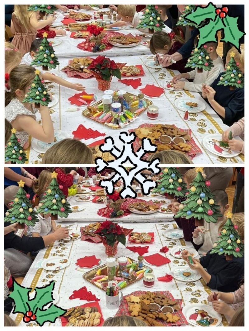 18 grudnia w ramach przygotowań do Świąt Bożego Narodzenia w klasie 0a odbyło się rodzinne dekorowanie i degustacja pierniczków, które poprzedziły występy przedszkolaków. Dzieci przygotowały taniec, wiersz i pastorałkę, by radośnie powitać swoich wyjątkowych gości. Własnoręcznie ozdobione pierniki i wspólne kolędowanie sprawiły wszystkim wiele radości i wprowadziły w magiczny, świąteczny nastrój.