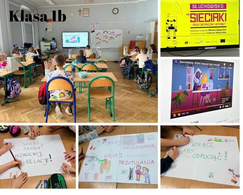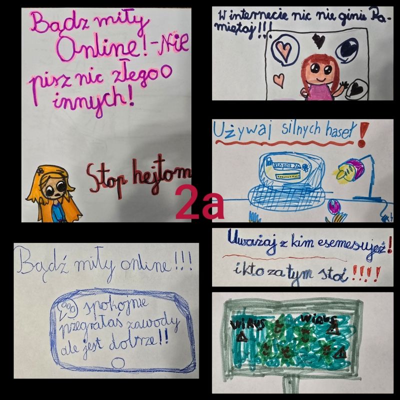 W ramach Dnia Bezpiecznego Internetu w klasach 1–3 wychowawcy poprowadzili zajęcia edukacyjne. Dzieci rysowały, przygotowywały plakaty, wymieniały się doświadczeniami oraz oglądały strony rządowe i materiały fundacji zajmujących się bezpieczeństwem w sieci. Była to okazja do nauki poprzez zabawę — uczniowie w przyjaznej formie poznawali zasady bezpiecznego korzystania z Internetu, rozwijając większą świadomość zagrożeń online oraz odpowiedzialnych zachowań w sieci.