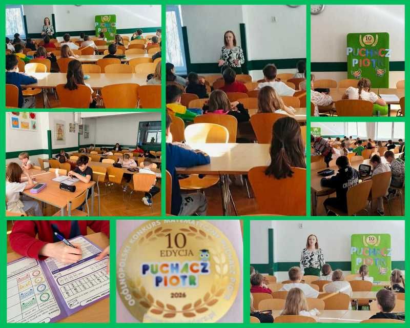 10 marca 2026 r. w naszej szkole odbyły się eliminacje szkolne dla uczniów klas 1–3 w ramach 10 edycji Ogólnopolskiego Konkursu Matematycznego „Puchacz Piotr”. Konkurs ma na celu rozwijanie zainteresowań matematycznych wśród najmłodszych uczniów oraz zachęcanie ich do logicznego myślenia i podejmowania matematycznych wyzwań. Uczestnicy zmierzyli się z zestawem ciekawych zadań matematycznych dostosowanych do ich wieku. Zadania wymagały nie tylko umiejętności liczenia, ale także spostrzegawczości, logicznego myślenia i uważnego czytania poleceń. Wszystkim uczniom dziękujemy za udział, zaangażowanie i odwagę w podejmowaniu matematycznych wyzwań. Trzymamy kciuki za uczestników, którzy będą reprezentować naszą szkołę w kolejnym etapie konkursu.