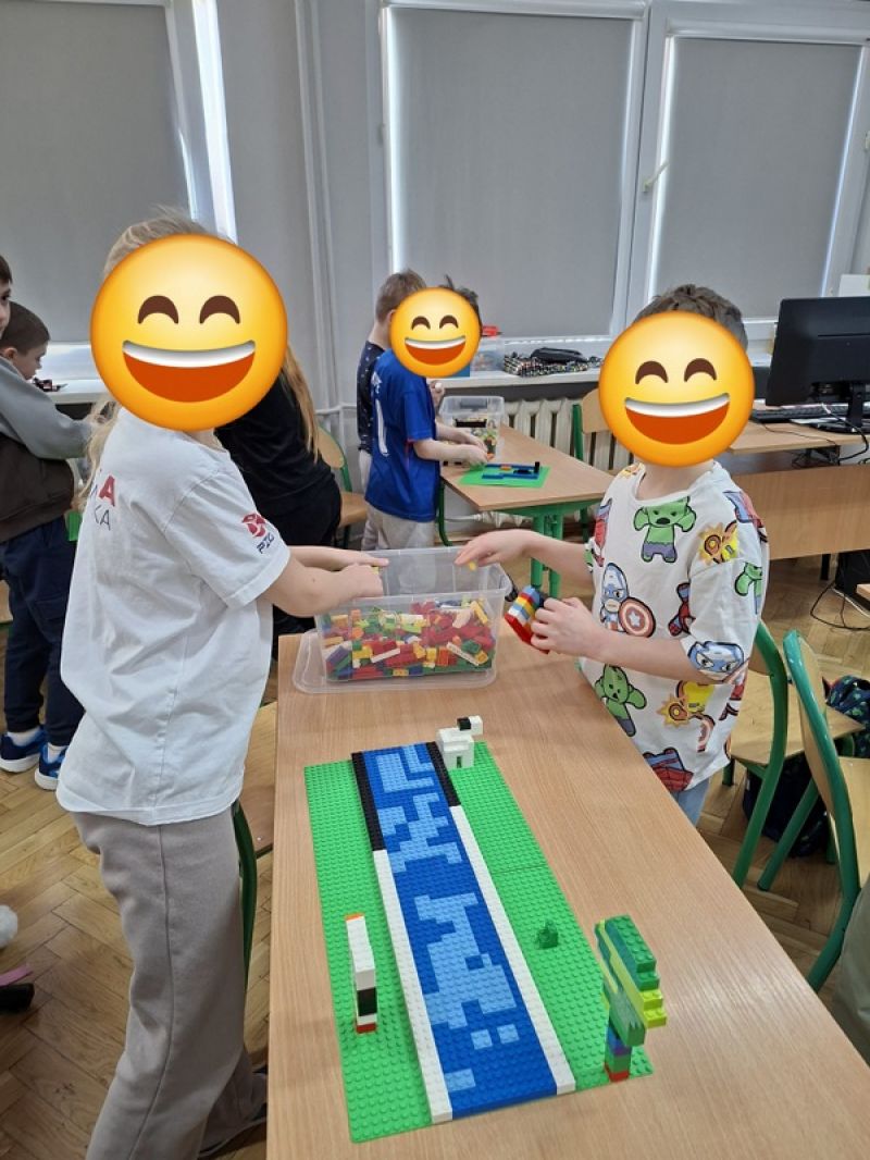 Podczas budowania różnorodnych konstrukcji dzieci rozwijały wyobraźnię, kreatywność oraz zdolności manualne. Pracując w grupach, uczyły się współpracy, wspólnego planowania działań oraz dzielenia się pomysłami. Każdy uczeń miał swoje zadanie, dzięki czemu rozwijał także poczucie odpowiedzialności za wykonywaną pracę i wspólny efekt końcowy. Uczniowie z dużym zaangażowaniem podejmowali kolejne wyzwania konstrukcyjne, starając się jak najlepiej wykorzystać dostępne elementy. Wspólne budowanie sprzyjało integracji zespołu klasowego, rozwijało umiejętność komunikacji oraz wzmacniało wiarę we własne możliwości.
