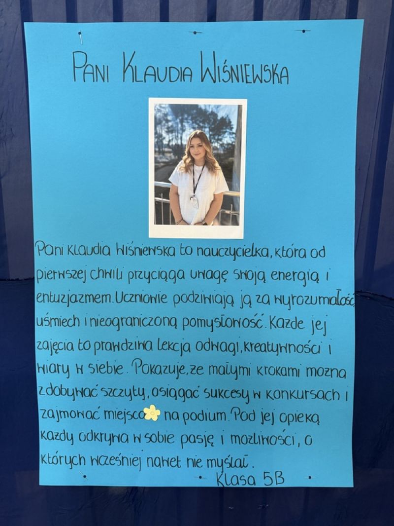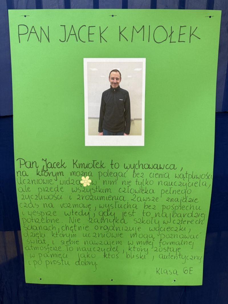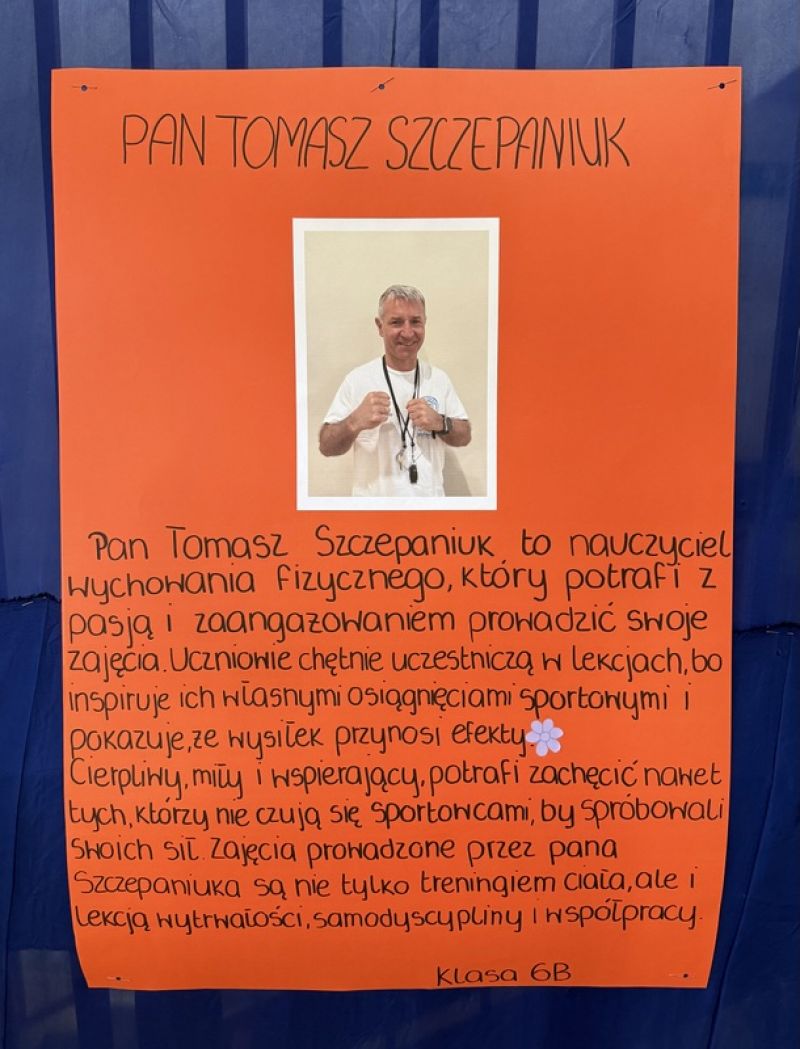 Poniżej prezentujemy plakaty przygotowane przez uczniów, przedstawiające sylwetki wychowawców biorących udział w tym etapie. Zachęcamy do zapoznania się z ich opisami, to doskonała okazja, aby lepiej poznać nauczycieli i docenić ich codzienną pracę oraz zaangażowanie.