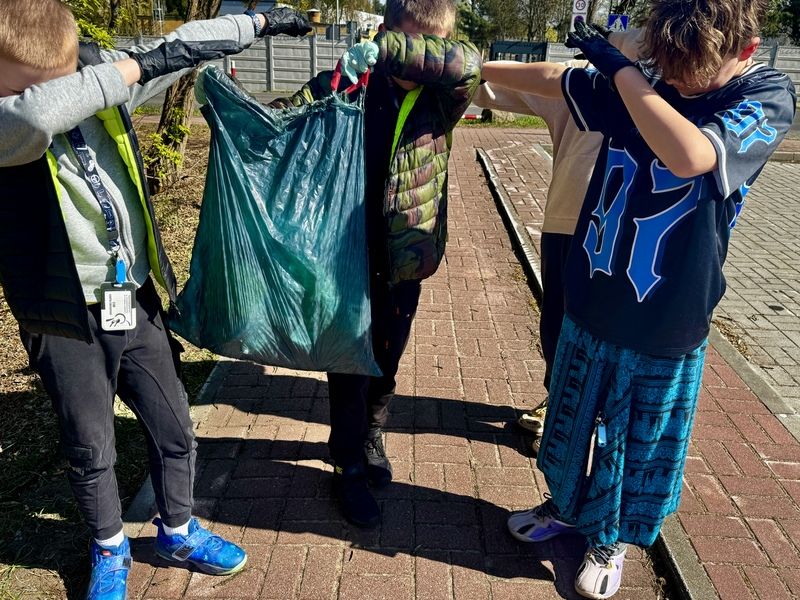 Dnia 17 kwietnia odbyło się wielkie sprzątanie terenu szkoły oraz jej okolic. W akcji wzięły udział klasy IV i V. Uczniowie z dużym zaangażowaniem, determinacją i poczuciem odpowiedzialności przystąpili do porządkowania otoczenia, pokazując, że dbanie o środowisko jest dla nich ważne. Klasa IV A była bardzo zmotywowana, a przy tym czerpała z tej pracy wiele radości, korzystając z pięknej pogody i możliwości przebywania na świeżym powietrzu. Dzięki wspólnemu wysiłkowi teren wokół szkoły stał się czystszy i bardziej przyjazny, a Matka Ziemia z pewnością odwdzięczy się za okazaną troskę.