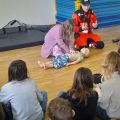 Trzeci panel prowadzony był przez ratownika medycznego i dotyczył udzielania pierwszej pomocy. Uczniowie mogli w praktyczny sposób ćwiczyć wykonywanie resuscytacji krążeniowo-oddechowej na fantomach.