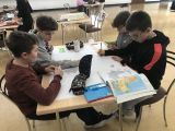 Postanowiliśmy uczcić setną lekcję języka polskiego. Mieliśmy różne wyzwania: przygotowanie plakatów związanych z lekturą ,,W pustyni i w puszczy”, ułożenie z klocków Lego scen z utworu i słuchanie muzyki.