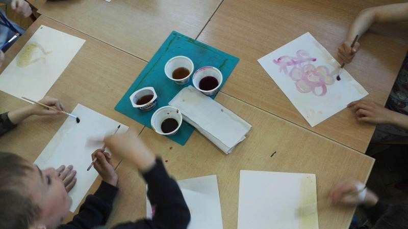 Uczniowie świetlicy zrealizowali kolejne zadanie z Projektu "Zabawa sztuką". Dzieci odgadywały po zapachu i kolorze z jaką farbą naturalną mają do czynienia. Następnie wykonały pracę plastyczną "Malowanie kawą, herbatą i barszczem". Farba użyta do pracy to kawa rozpuszczalna, herbaty zielona i czarna oraz barszcz czerwony.
