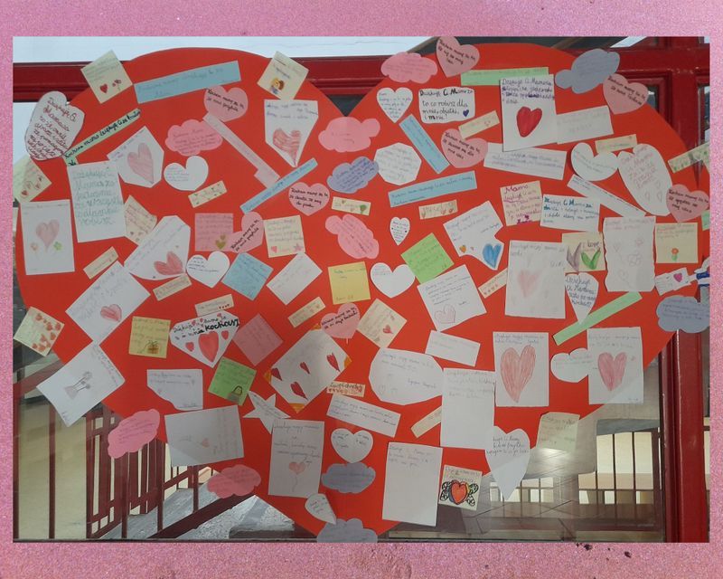 26 maja z okazji Dnia Matki Mały Samorząd Uczniowski przygotował na holu szkoły duże, czerwone serca na których uczniowie z oddziału przedszkolnego i klas I – III zmieścili karteczki, serduszka, chmurki z napisami „ Za co dziękuję mojej mamie…”