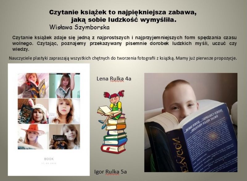 Nauczyciele plastyki zapraszają wszystkich chętnych do tworzenia fotografii z książką. Mamy już pierwsze propozycje.