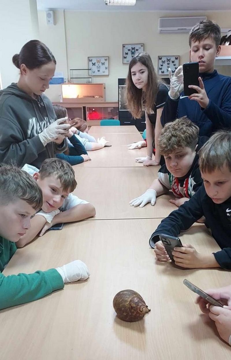 W drugim końcu ogrodu czekała na nas pani przewodnik, która poprowadziła bardzo ciekawą lekcję o bezkręgowcach - „Bezkręgowce – nie taki robal straszny”. Egzotyczne bezkręgowce można zobaczyć w warszawskim zoo przez cały rok. Występuje aż około 85 gatunków tych zwierząt. Mieliśmy okazję ujrzeć pająki, ślimaki, gąsienice i patyczaki. Niektóre z nich mogliśmy brać na ręce, ale dla bezpieczeństwa założyliśmy rękawiczki. Dowiedzieliśmy się, że każdy z bezkręgowców ma 6 nóg, a pająki nawet 8. Najbardziej urzekł nas ślimak, który był ogromny i pokazał się nam w całej okazałości. Nie zdarza się to często, więc pani przewodnik stwierdziła, że najprawdopodobniej nas się nie boi. Lekcja była bardzo ciekawa, z przyjemnością posłuchalibyśmy jeszcze ciekawostek o tych wyjątkowych zwierzętach. Z pewnością więcej szczegółów o nich poznamy w tym roku na lekcji biologii.