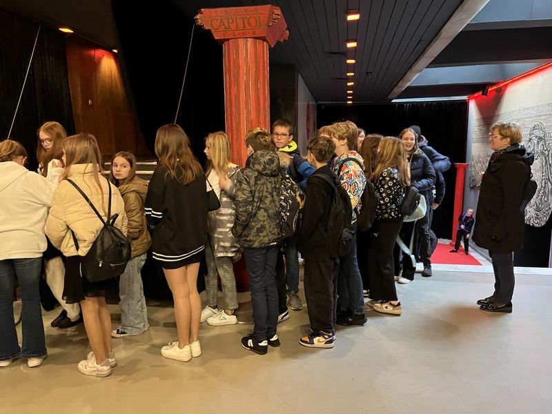 Dojechaliśmy do celu. Teatr z zewnątrz wyglądał pięknie, a w środku jeszcze bardziej prestiżowo. Oddaliśmy nasze kurtki w szatni i oczekiwaliśmy na wejście do sali teatralnej. Wszyscy byliśmy podekscytowani. Zajęliśmy nasze miejsca.
