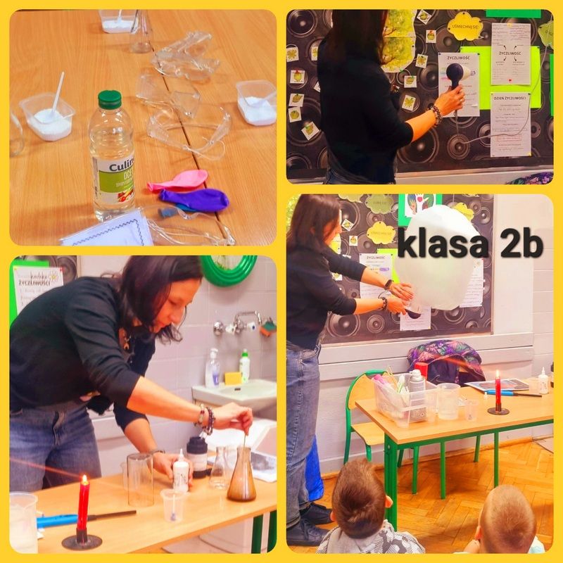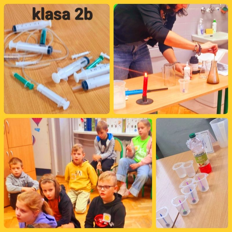 We wtorek 21 listopada uczniowie klasy 2b wzięli udział w warsztatach chemicznych prowadzonych przez panią Adę. Uczniowie dowiedzieli się, że gazy nie mają kształtu – przybierają kształt naczynia, w którym się znajdują. Obserwowali, że gazy nie mają określonej objętości – przybierają objętość naczynia, w którym się znajdują, Doświadczali, że gazy są ściśliwe (w przeciwieństwie do ciał stałych i cieczy). Poznali również na czym polega rozprężanie gazu czyli na zwiększaniu jego objętości i spadku ciśnienia. Każdy uczeń wykonał wiele doświadczeń. Budował model gazów. Zachęcamy do obejrzenia fotorelacji z zajęć.