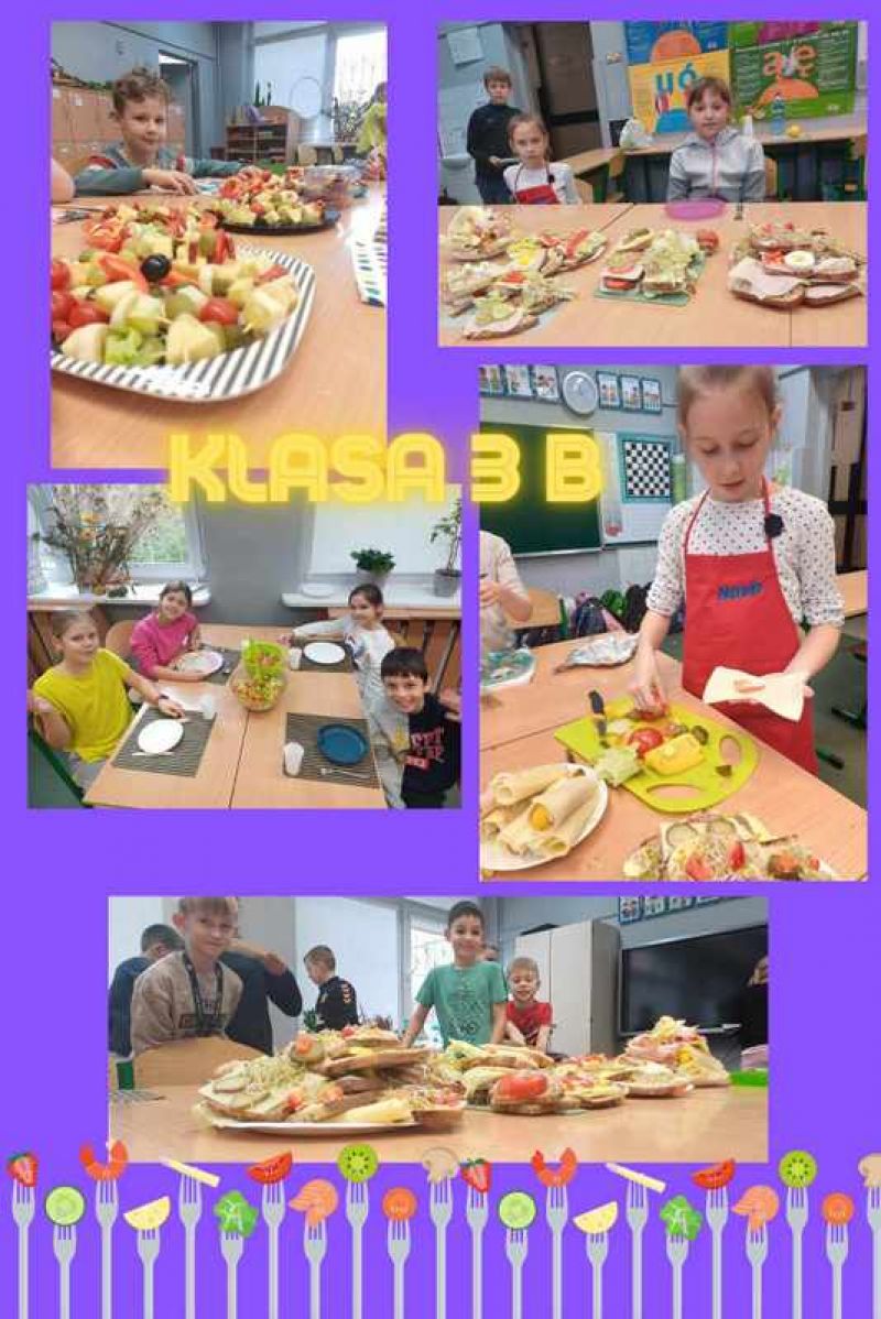 Z okazji Dnia Zdrowego Jedzenia w naszej szkole w ramach zajęć lekcyjnych uczniowie klas 1-3 przygotowywali samodzielnie zdrowe posiłki. Dzieci przyrządziły kolorowe i pełnowartościowe kanapki, sałatki i szaszłyki. Nauczyciele rozmawiali z uczniami o roli śniadania w codziennej diecie i jego wpływie na ich samopoczucie w ciągu dnia. Dzieci dowiedziały się, że zdrowe odżywianie, dobre nawyki żywieniowe oraz regularne spożywanie posiłków ma duży wpływ na nasze zdrowie. Poznały także konsekwencje złego odżywiania.