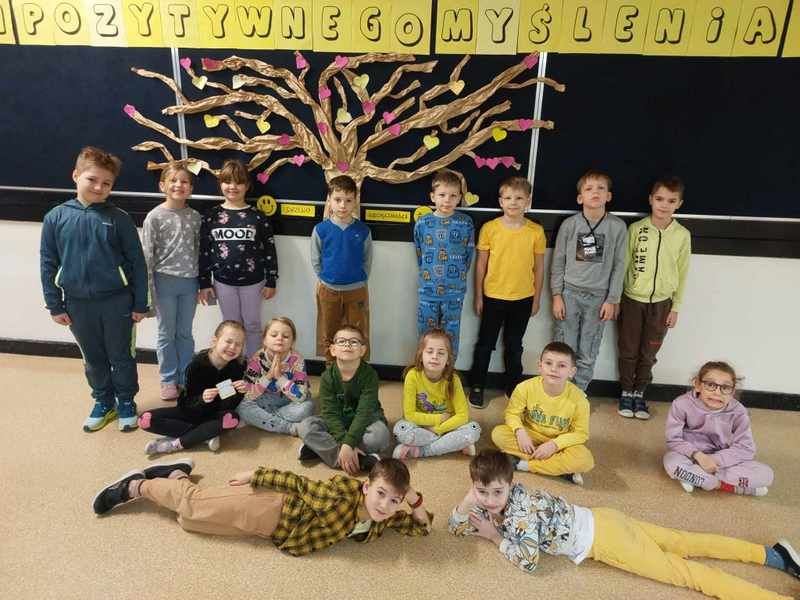 Uczniowie wzięli udział w zajęciach pt. Skąd się bierze radość? Wspólnie zastanawialiśmy się jak można świadomie zmieniać swoje nastawienie do światai wytrenować mięśnie pozytywności. Szukaliśmy sposobów w jaki sposób możemy poprawiać sobie nastrój każdego dnia, co pozytywnie wpływa na nasze samopoczuciei wywołuje dobre myśli. Określaliśmy: co kochamy lub lubimy w sobie. Część zajęć poświęcona była także wdzięczności i treningowi uważności. Uczniowie zastanawiali się: za co i komu są wdzięczni, na serduszkach wypisali swoje przemyślenia i przyczepiali na drzewie wdzięczności. Uczniowie przygotowali też różne drobne niespodzianki dla pracowników, nauczycieli i swoich rówieśników, których celem było sprawienie radości. Dzieci
