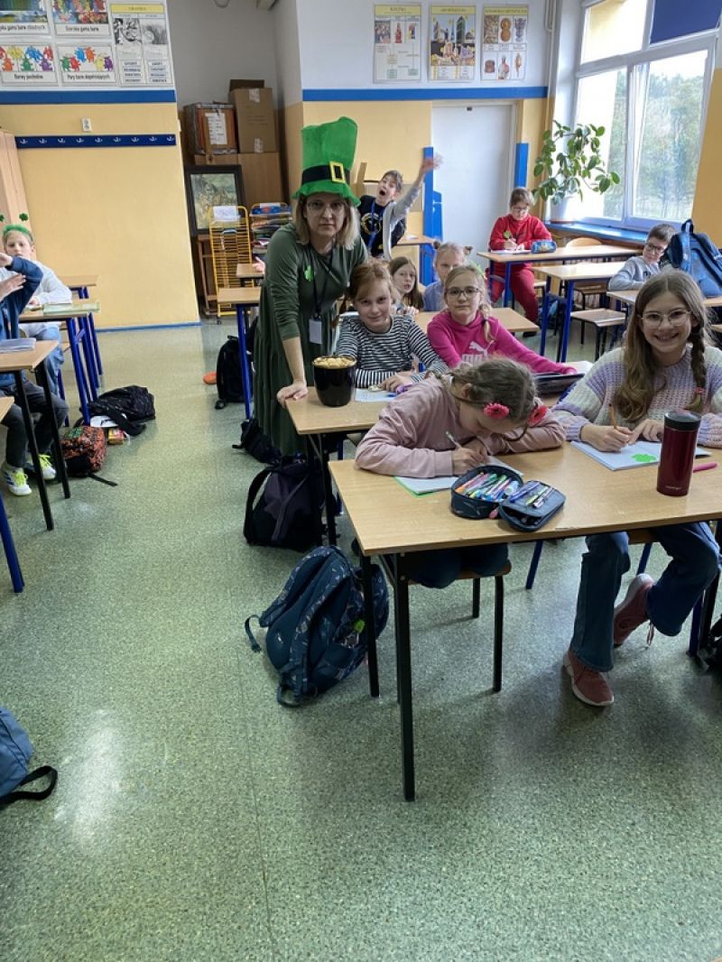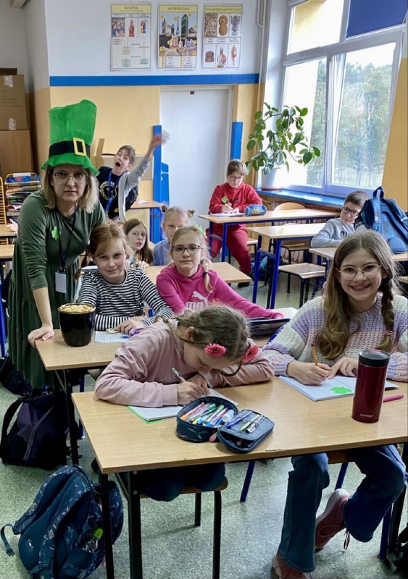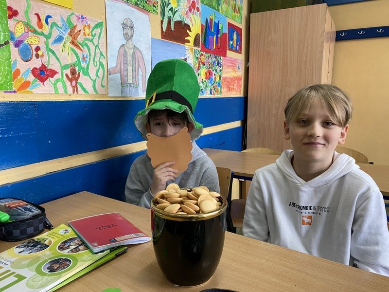 Jednym symboli tego dnia jest trzylistna koniczyna, dzięki której w prosty sposób Święty Patryk mógł wytłumaczyć ludziom, na czym polega Trójca Święta. Uczniowie klasy 4d ozdobili swoje ubrania taką zieloną koniczynką i celebrowali święto. Poznali przy tym wiele nowych słówek po angielsku, np.