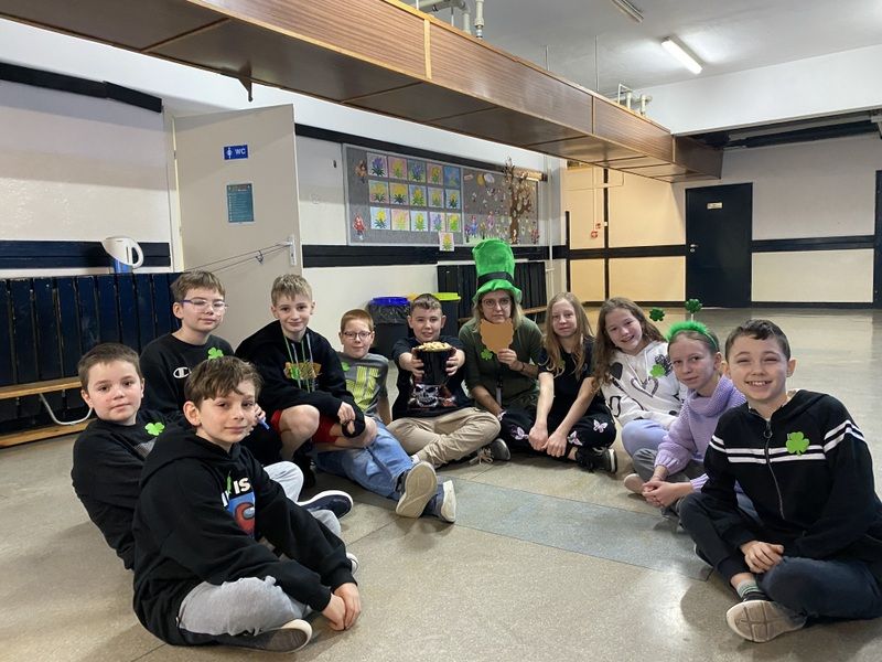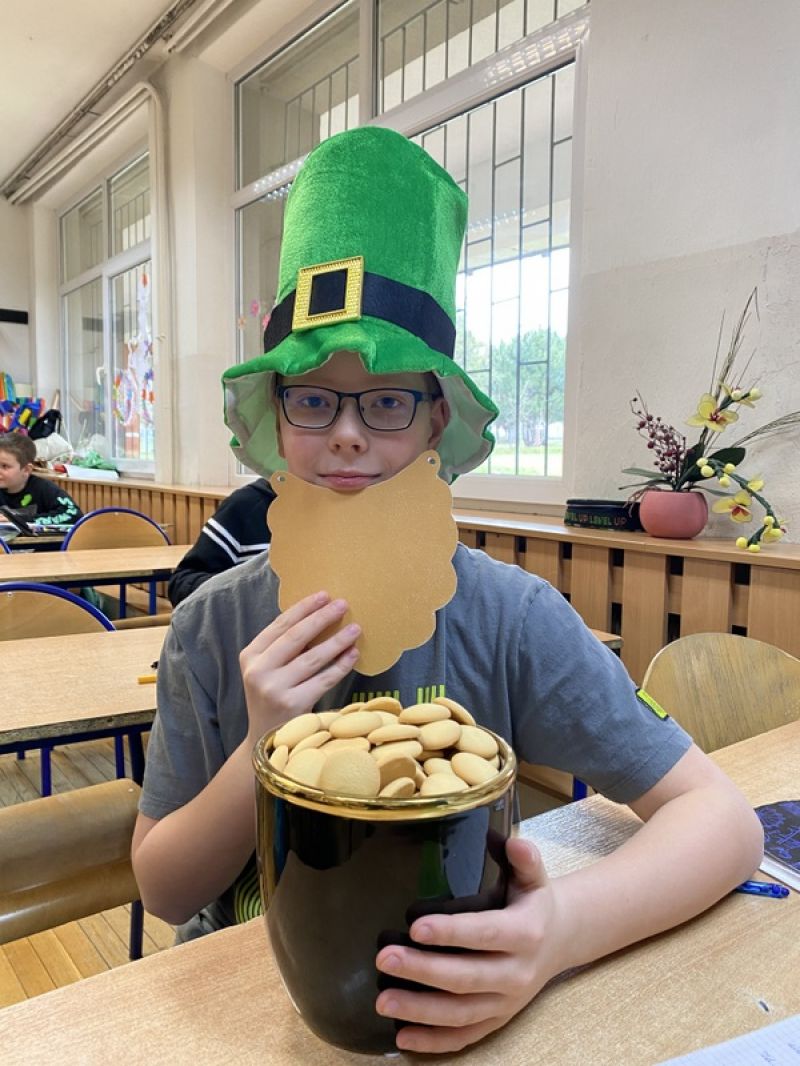 Było gwarno i wesoło, gdyż mieliśmy nalot skrzatów Leprechaun’ów, stworzeń z Irlandii, które tradycyjnie ubrane są w zielone odzienie oraz kapelusz. Skrzaty mocno pilnowały swojego skarbu, czyli garnca złota. Taka lekcja to duża porcja wiedzy i zabawy!