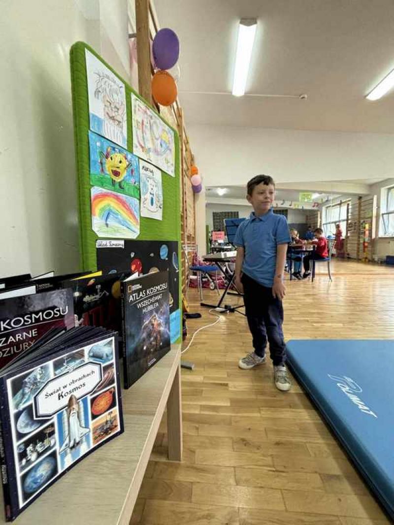 W oddziale przedszkolnym uczniowie prezentowali swoje talenty przed rodzicami. Na powitanie uczniowie zaśpiewali piosenkę pt.”Hymn dzieci”. Mogliśmy podziwiać grupowe występy, w urządzonych kącikach wedle zainteresowań dzieci, np. lalek, kolekcjonowania kart, klocków Lego, kosmosu czy pokaz skakania na skakance. Dużym zainteresowaniem cieszyły się również występy indywidualne. Zobaczyliśmy niezwykłą odsłonę muzyczną: grę na skrzypcach, ukulele, keyboardzie a także artystyczną w której uczennice pięknie recytowały wiersze. Dzieci pokazały jak aktywnie spędzają czas wolny poza szkołą – trenowanie sportów walki, np. karate, szermierka, uprawianie gimnastyki czy zainteresowanie światem dinozaurów lub plastyką. Uczniowie zaprezentowali również pokaz gry w szachy.