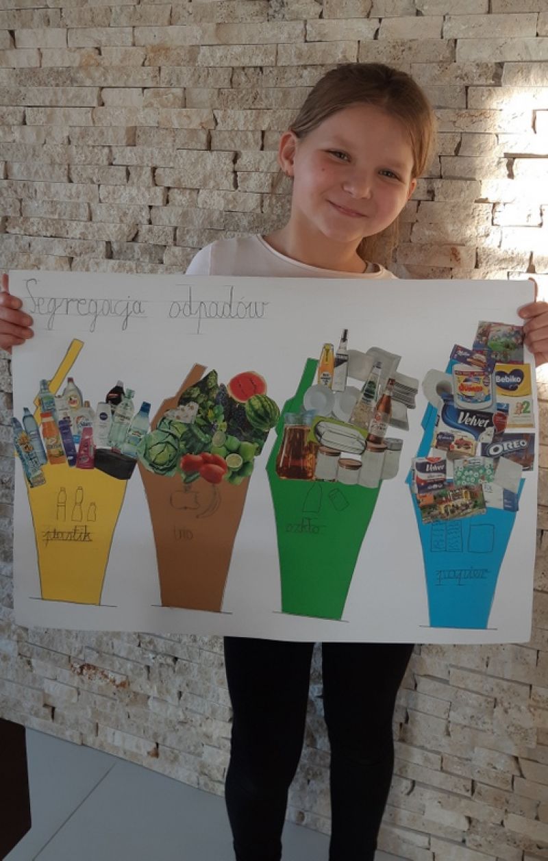 W ramach lekcji klasa Id poznawała zasady „Ekologii na co dzień”. Dzieci uczyły się jak należy oszczędzać zasoby wody, jak robić zakupy, by nie tworzyć kolejnych stosów śmieci. Na koniec pierwszaki wykonały prace plastyczną metodą kolażu, która utrwaliła zasady segregowania odpadów.