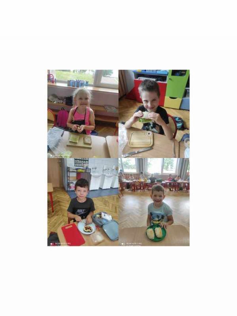 Z okazji nadchodzącego lata uczniowie w dobrym humorze przygotowywali samodzielnie śniadanie w postaci kanapek, które potem zajadali ze smakiem.
