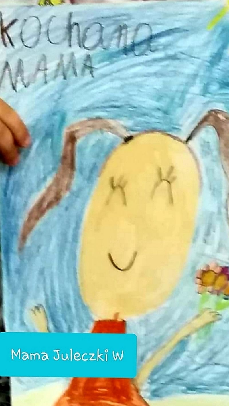 Uczniowie klasy 1b świętują Dzień Mamy z tej okazji przygotowali niespodziankę portret swoich mam. Kochamy Was mocno!!!!