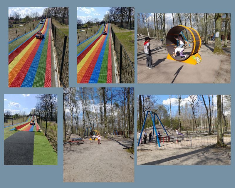 Przed zajęciami technicznymi odbył się pokaz edukacyjny: „Czyje to pióro, czyje jajo ?”. Dzieci w małych grupach wykonywały palmy wielkanocne, które potem ozdobiły naszą salę 015, a następnie zdobiły styropianowe jajka, które zabrały ze sobą do domu. Na świeżym powietrzu w „Paśniku” ubijaliśmy masło, z którego potem animatorka uformowała wielkanocnego baranka. Po poczęstunku bawiliśmy się na trampolinach, slackline, karuzeli chomika, w labiryncie, a także zjeżdżaliśmy na pontonach. Pogoda nam dopisała, a prowadzone zajęcia były ciekawe i różnorodne.