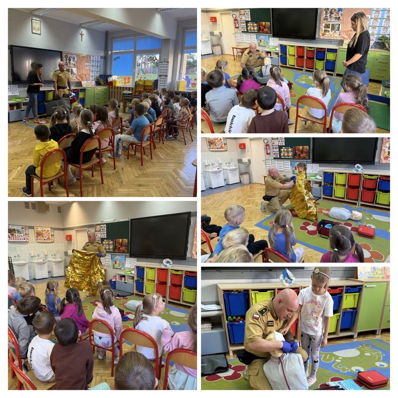 W ubiegłym tygodniu w klasie 0a odbyły się warsztaty z zakresu pierwszej pomocy przedmedycznej, poprowadzone przez zawodowego strażaka i wykwalifikowanego Ratownika Medycznego Pana Przemysława Pruszczyńskiego. Celem tego niezwykle ważnego spotkania było nabycie wiedzy i umiejętności udzielania pierwszej pomocy zanim przyjedzie pogotowie ratunkowe. Dzieci dowiedziały się w jaki sposób postępować w przypadku skaleczenia, zadławienia, złamania czy omdlenia. Uczniowie zostali zapoznani ze sprzętem ratującym życie i utrwalili znajomość numerów alarmowych. Wiele emocji wzbudził pokaz czynności z zakresu resuscytacji wykonany na fantomie. Podczas zajęć każde dziecko mogło poczuć się jak mały ratownik i samodzielnie wykazać praktyczną znajomością udzielania pierwszej pomocy.