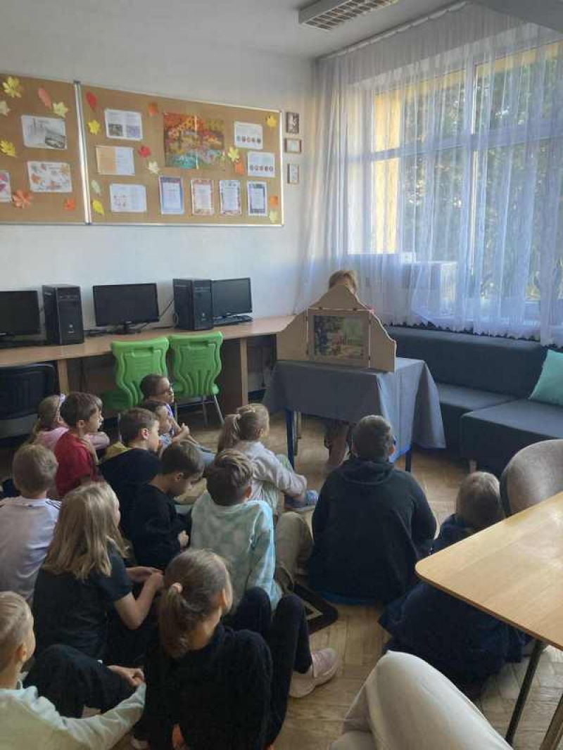 Obejrzały film „Jak działa serce? ”oraz wysłuchali niezwykłej historii chorego Misia - przedstawionej za pomocą teatrzyku kamishibai.
