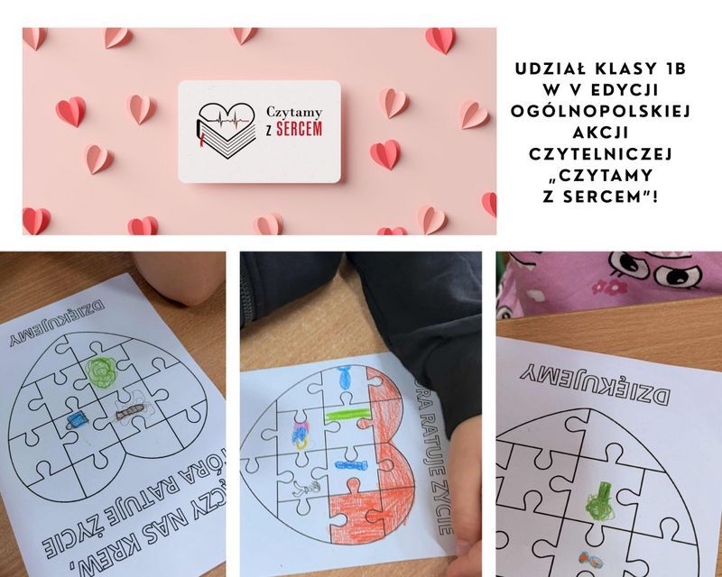 W poniedziałek 29 września 2025r. uczniowie klasy 1b wzięli udział w ogólnopolskiej akcji „Czytamy z sercem”, której celem jest promowanie czytelnictwa oraz szerzenie wiedzy na temat zdrowia serca. Na tej lekcji połączyło dwie ważne wartości – miłość do książek i troskę o zdrowie. Uczniowie rozmawiali o emocjach i empatii, a także uczestniczyli w zajęciach poświęconych zdrowemu stylowi życia. Wspólnie wykonali prace plastyczne. Dzięki zajęciom uczniowie przekonali się, że czytanie rozwija nie tylko umysł, ale i serce.