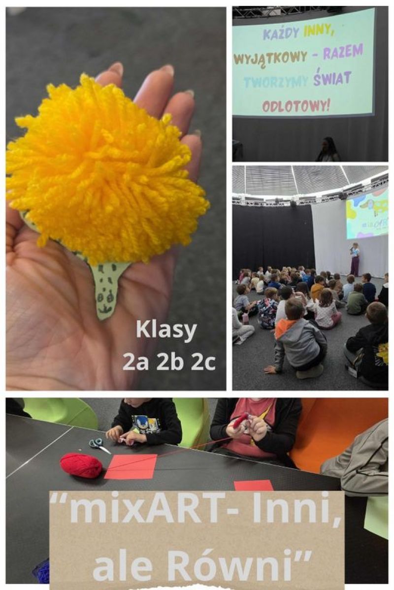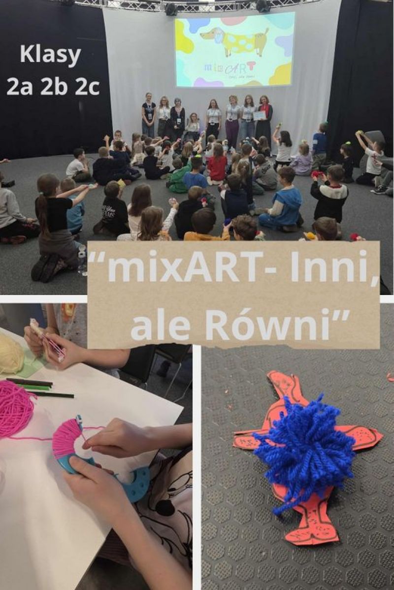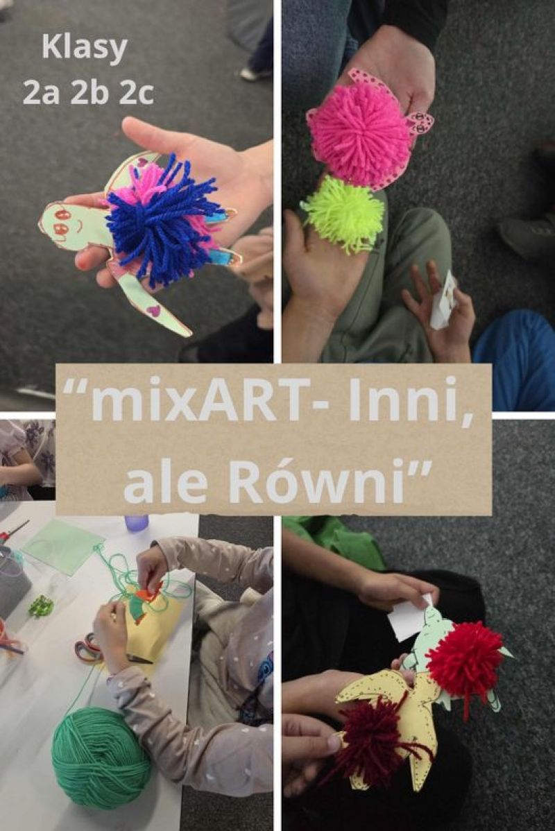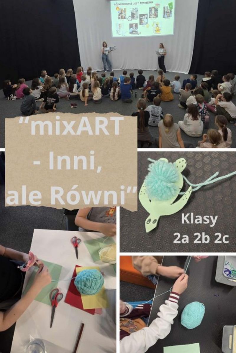 W październiku, w ramach ogólnopolskich olimpiad projektów społecznych "Zwolnieni z Teorii" w Poczytalni Biblioteki Miejskiej w Legionowie odbyły się warsztaty projektu "mix ART- Inni, ale równi". Udział w nich wzięli uczniowie z klas 1-3. Celem warsztatów było budowanie wśród dzieci postaw empatii i akceptacji. Uczniowie mieli okazję wzmocnić poczucie własnej wartości poprzez sztukę. Dzieci przez cały czas trwania warsztatów angażowały się w wykonywane prace i z zainteresowaniem słuchały pań prowadzących, które miały dla nas dużo ciepła, życzliwości i cierpliwości. Z zajęć uczniowie wyszli podekscytowani, z uśmiechem na twarzy.