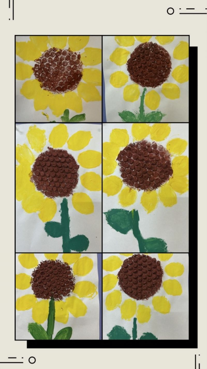 Folia bąbelkowa działa relaksacyjne, redukując stres i napięcie, a jednocześnie rozwija umiejętności z zakresu motoryki małej. Uczniowie z wielkim skupieniem „zgniatali pęcherzyki”, nasłuchując się powstającym przy tej czynności dźwiękom. Na zakończenia wykonaliśmy piękne prace plastyczne „Słoneczniki”, oczywiście wykorzystując folię bąbelkową.