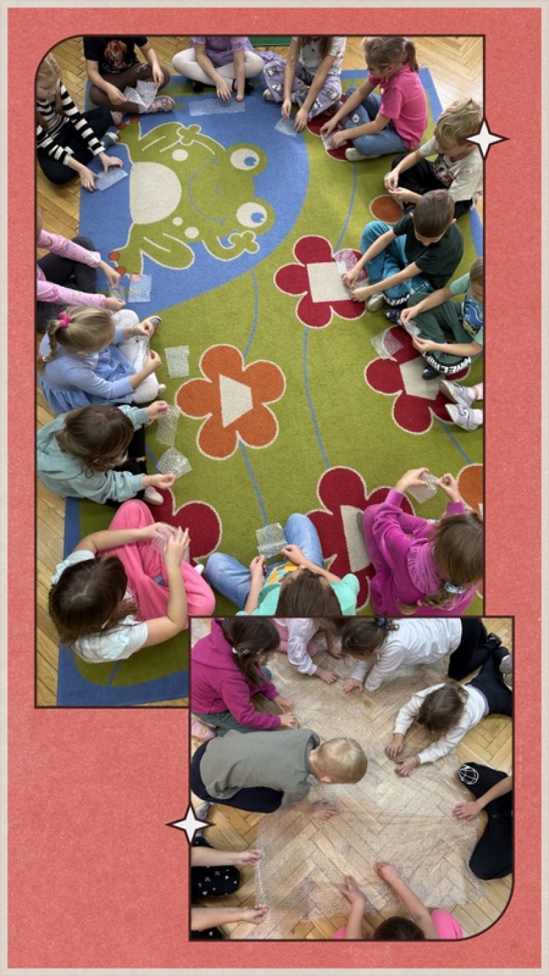 Zwykła folia bąbelkowa okazała się wszechstronnym narzędziem na zajęciach w klasie 0a. Dzieci bardzo chętnie chodziły i skakały po ścieżce sensorycznej, stymulując zmysł dotyku.