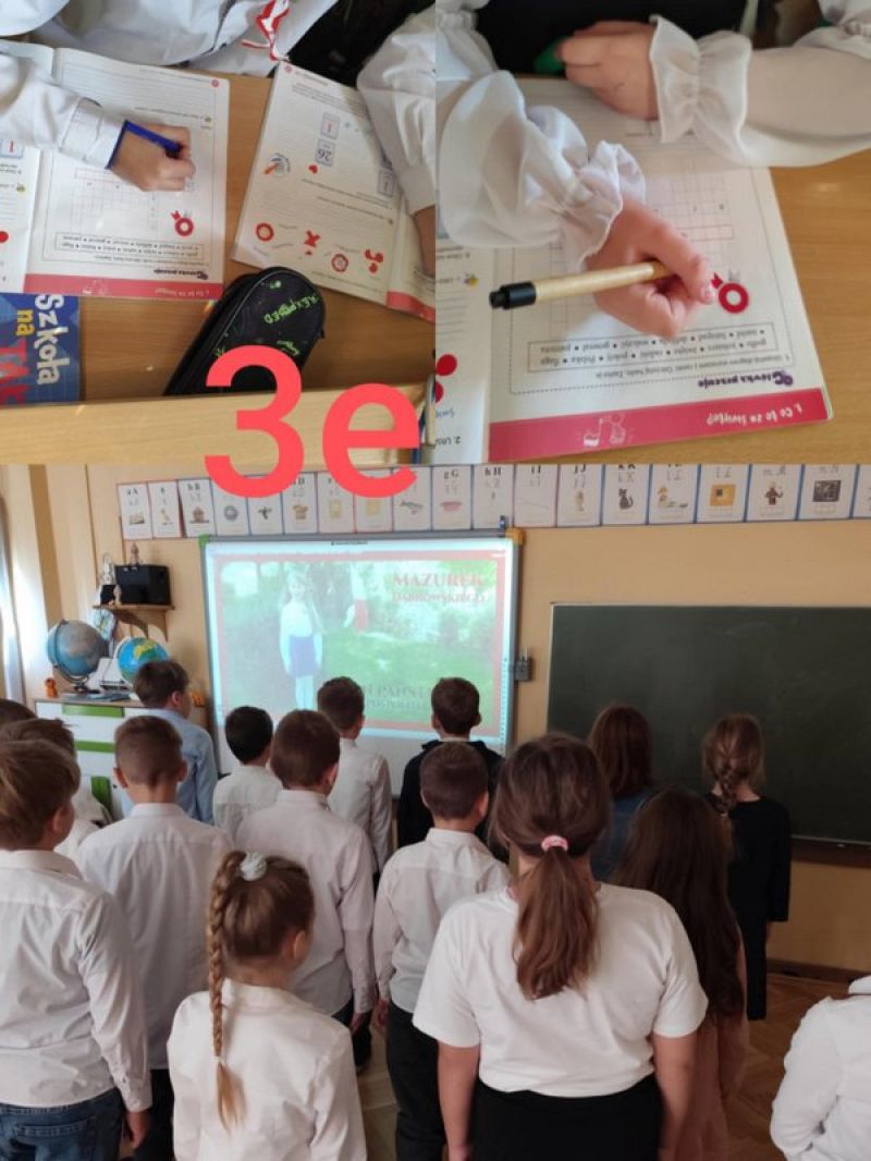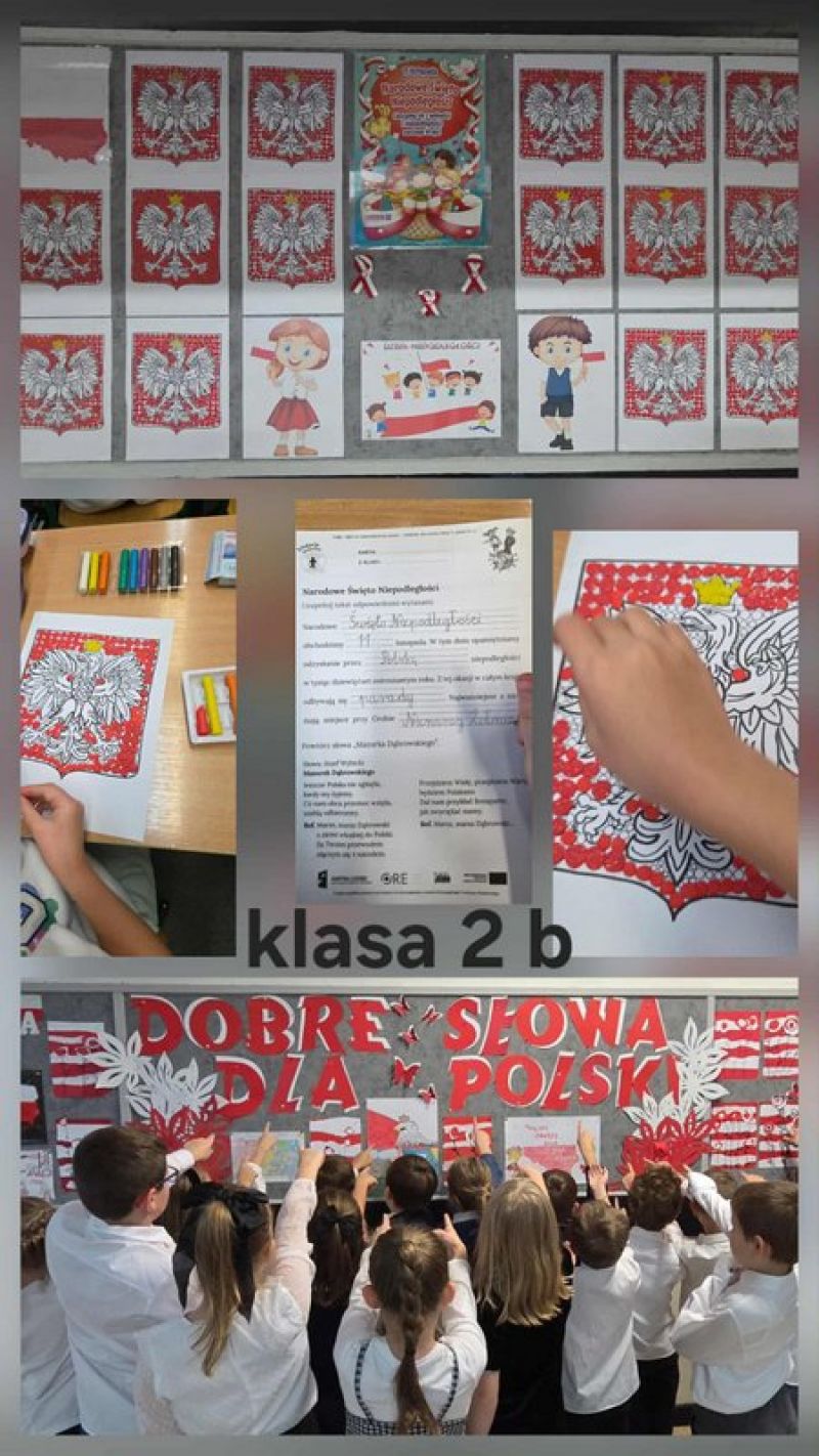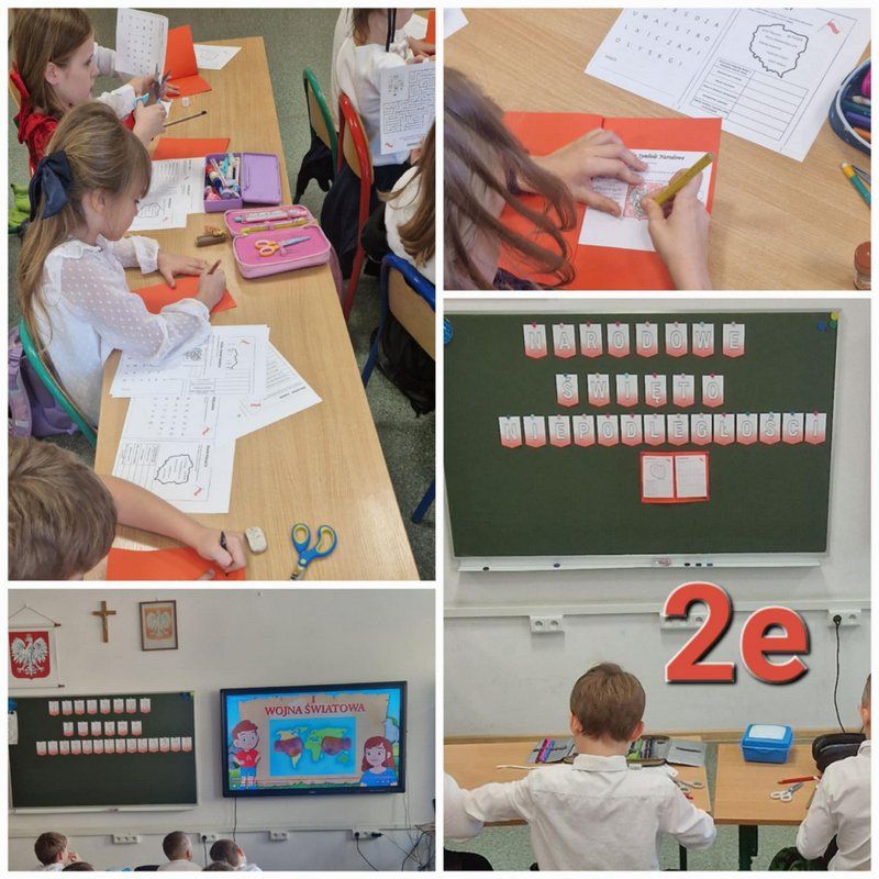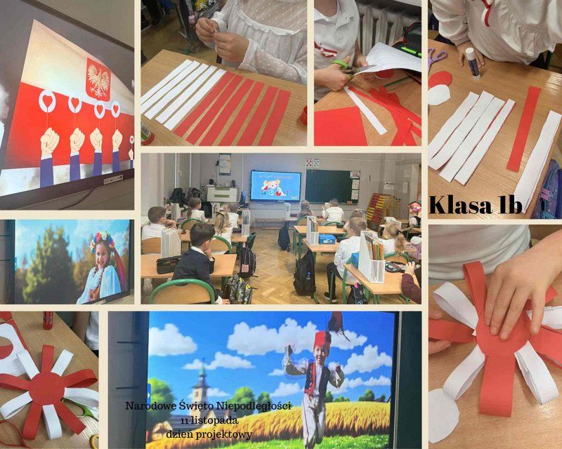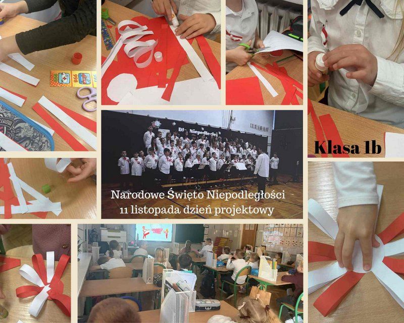 Wszyscy odświętnie ubrani w stroje galowe wspólnie odśpiewali hymn Polski, a następnie uczestniczyli w koncercie pieśni patriotycznych w wykonaniu chóru szkolnego. W ramach dnia projektowego dzieci w klasach podejmowały wiele aktywności związanych z rocznicą odzyskania niepodległości. Wykonywały kotyliony, prace plastyczne przedstawiające symbole narodowe, którymi udekorowały klasy i szkolne korytarze. Wszędzie widać było biało- czerwone barwy. Oglądały filmiki o historii odzyskania niepodległości przez Polskę, śpiewały piosenki patriotyczne. Dzień ten stał się okazją do przypomnienia wydarzeń związanych z ważnym momentem w dziejach naszej Ojczyzny. Był dla wszystkich wspaniałą lekcją historii i patriotyzmu.