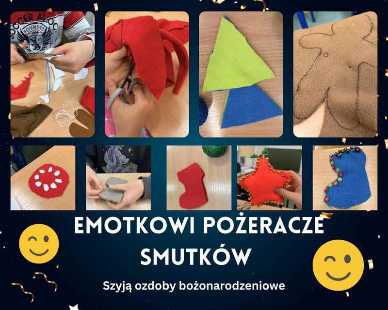 Podczas grudniowych zajęć rozpoczęliśmy twórczy proces, który łączył pomysłowość, estetykę i umiejętności manualne. Nasza praca przebiegała etapami – od projektu, aż do gotowego dzieła. Pierwszym krokiem był projekt. Na tym etapie powstał pomysł na ozdobę – uczniowie określali jej kształt, wielkość, kolorystykę oraz przeznaczenie (np. zawieszka na choinkę, dekoracja). Następnie uczniowie dokonali doboru materiałów i kolorystyki. Kolejnym etapem było wykonanie formy, wykończenie i dekoracja. Na koniec do ozdoby uczniowie doszywali drobne elementy. Gotowe ozdoby bożonarodzeniowa widoczne na zdjęciach są efektem pracy twórczej i stanowią niepowtarzalną dekorację świąteczną. Niektóre będą pełniły funkcję własnoręcznie wykonanego prezentu.
