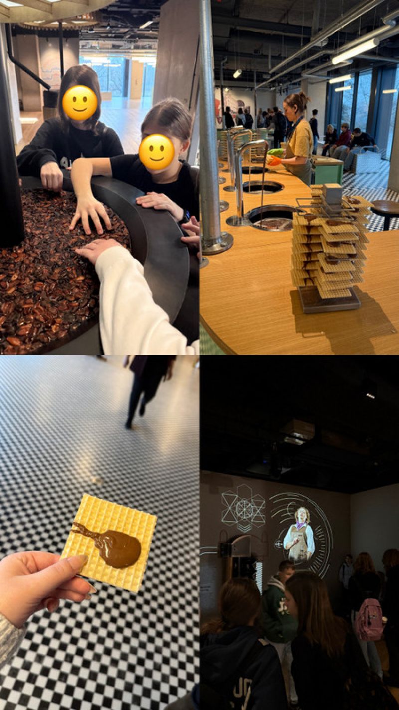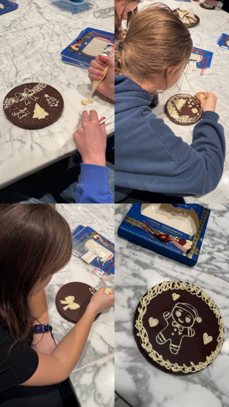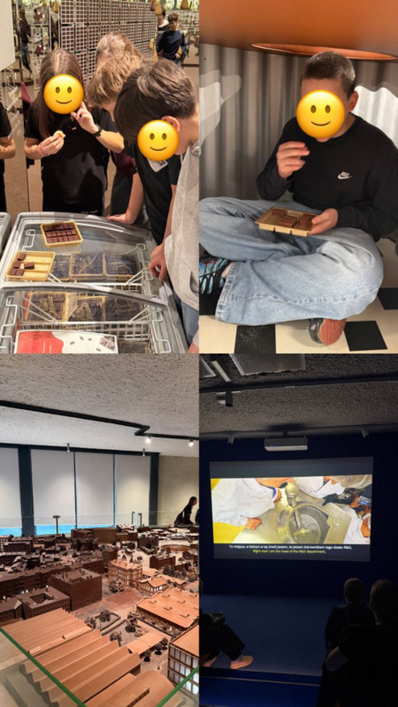 18 grudnia klasa 7B wybrała się na wycieczkę do Fabryki Czekolady E.Wedel. Na miejscu czekało na nas mnóstwo czekoladowych atrakcji- warsztaty z dekorowania wedlowskich torcików, zwiedzanie fabryki, degustacja różnych rodzajów czekolady oraz poznanie historii firmy Wedel. Oglądaliśmy również film o fabryce, projektowaliśmy własne pudełka Ptasiego Mleczka, a nawet mieliśmy okazję zobaczyć, jak wygląda produkcja słodyczy.Na każdym kroku towarzyszyła nam czekolada, skakaliśmy po jej „kawałkach”, próbowaliśmy kakaowca, a podobno niektórzy, schowali się z całym pudełkiem Ptasiego Mleczka. Nie zabrakło też niespodzianek! Każdy dostał czekoladę po zakończeniu zwiedzania. Wróciliśmy tak zasłodzeni, że poziom cukru skoczył nam poza skalę!