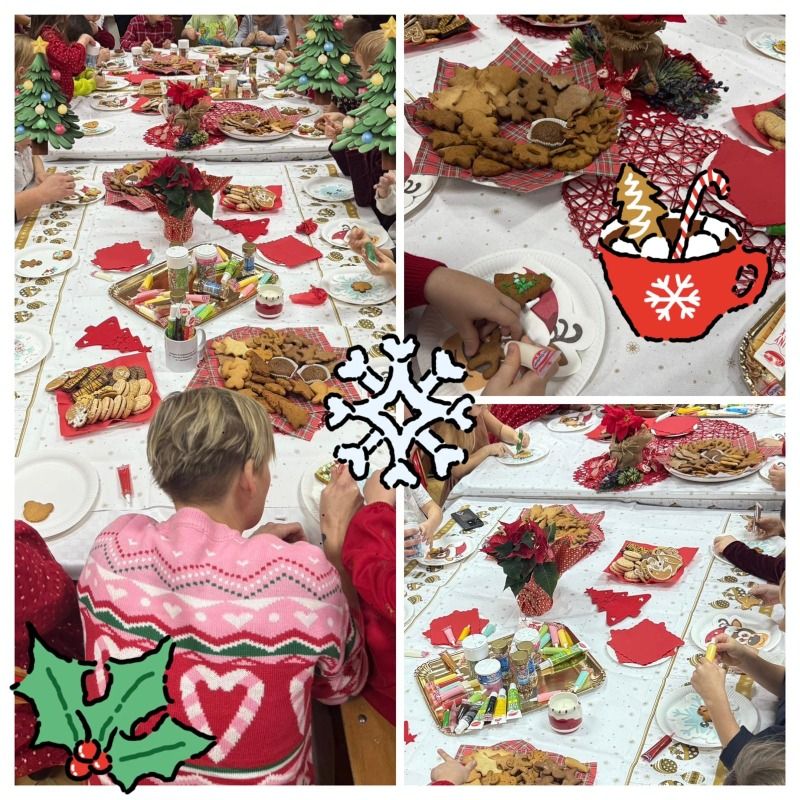 18 grudnia w ramach przygotowań do Świąt Bożego Narodzenia w klasie 0a odbyło się rodzinne dekorowanie i degustacja pierniczków, które poprzedziły występy przedszkolaków. Dzieci przygotowały taniec, wiersz i pastorałkę, by radośnie powitać swoich wyjątkowych gości. Własnoręcznie ozdobione pierniki i wspólne kolędowanie sprawiły wszystkim wiele radości i wprowadziły w magiczny, świąteczny nastrój.