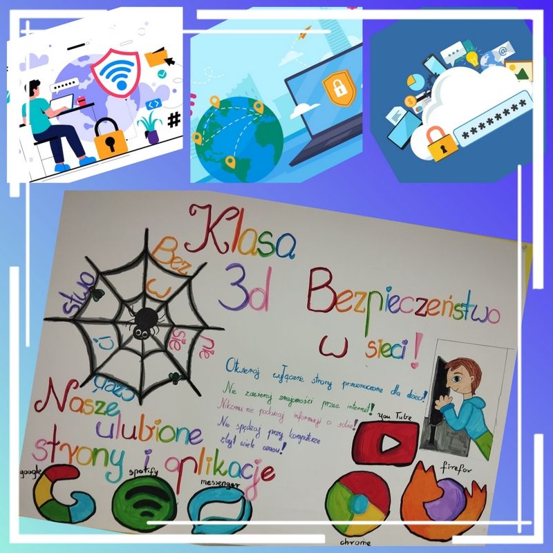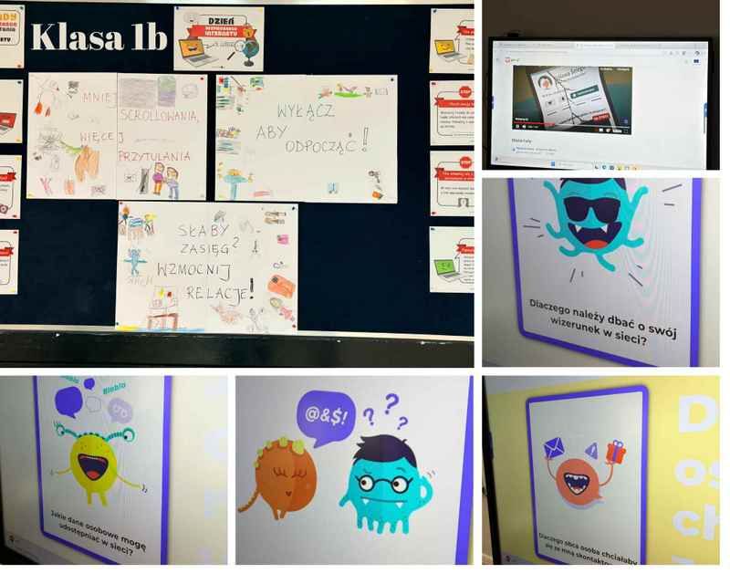 W ramach Dnia Bezpiecznego Internetu w klasach 1–3 wychowawcy poprowadzili zajęcia edukacyjne. Dzieci rysowały, przygotowywały plakaty, wymieniały się doświadczeniami oraz oglądały strony rządowe i materiały fundacji zajmujących się bezpieczeństwem w sieci. Była to okazja do nauki poprzez zabawę — uczniowie w przyjaznej formie poznawali zasady bezpiecznego korzystania z Internetu, rozwijając większą świadomość zagrożeń online oraz odpowiedzialnych zachowań w sieci.