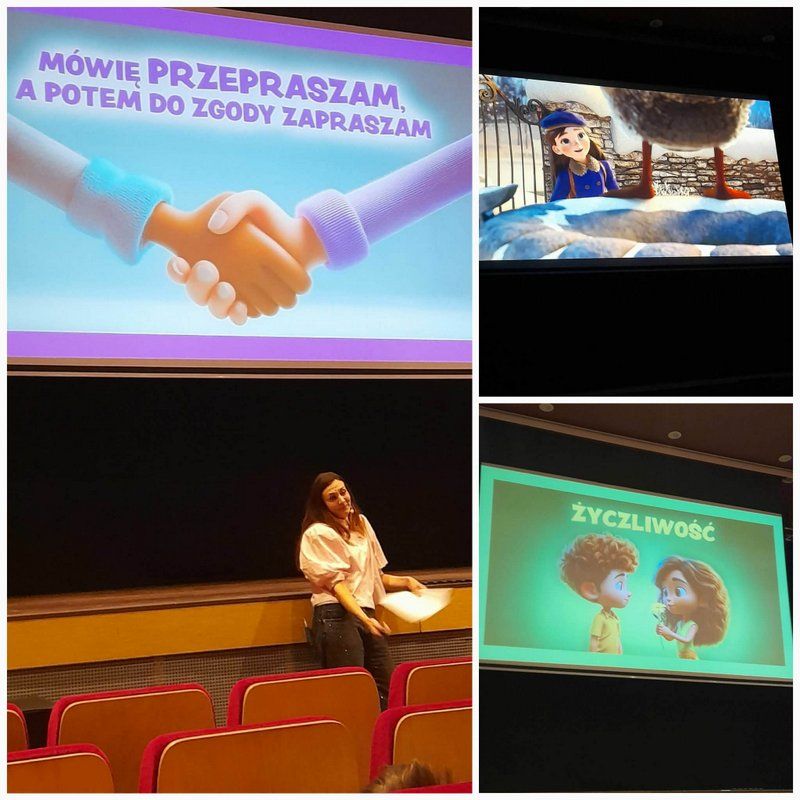 W ramach lekcji w kinie uczniowie klas 2b, 2e i 3a uczestniczyli w zajęciach pt. „Proszę, dziękuję, przepraszam – czyli przepis na dzień dobry”, połączonych z projekcją filmu „Północ Gerda i Kaj”.