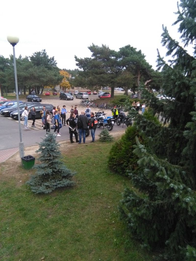 Na podstawie prezentacji multimedialnej goście zaprezentowali, zgromadzonym na sali gimnastycznej uczniom, wiedzę z bezpieczeństwa w ruchu drogowym ze szczególnym uwzględnieniem jednośladów. Zwrócono uwagę młodzieży na odpowiednie przygotowanie się do udziału w ruchu drogowym, nie tylko na znajomość przepisów i umiejętność jazdy na rowerze, czy motorowerze, ale również na strój: kamizelka odblaskowa, kask. Swoim doświadczeniem podzielił się również ratownik medyczny.