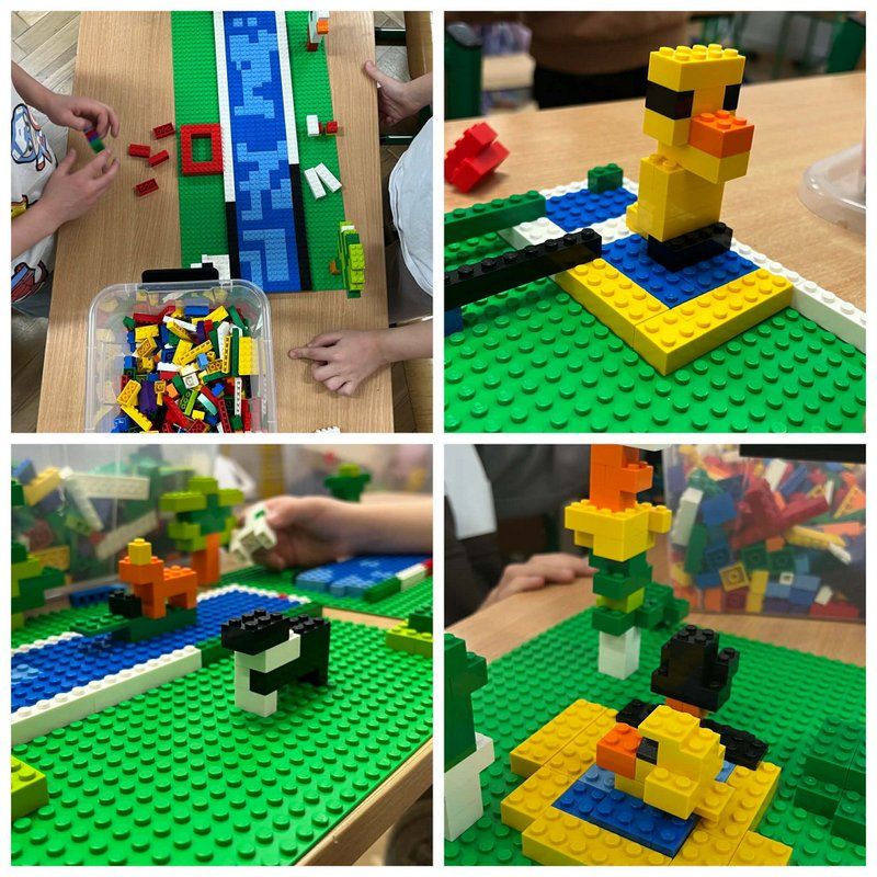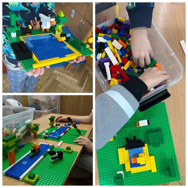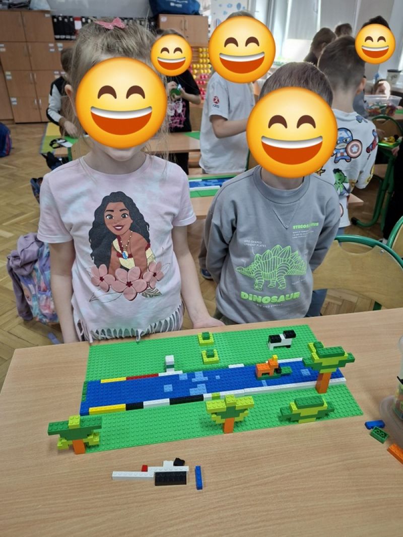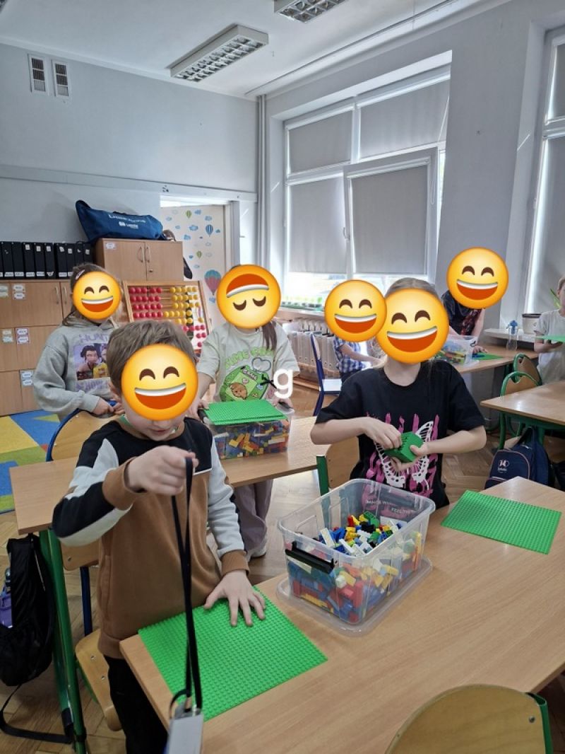 Podczas budowania różnorodnych konstrukcji dzieci rozwijały wyobraźnię, kreatywność oraz zdolności manualne. Pracując w grupach, uczyły się współpracy, wspólnego planowania działań oraz dzielenia się pomysłami. Każdy uczeń miał swoje zadanie, dzięki czemu rozwijał także poczucie odpowiedzialności za wykonywaną pracę i wspólny efekt końcowy. Uczniowie z dużym zaangażowaniem podejmowali kolejne wyzwania konstrukcyjne, starając się jak najlepiej wykorzystać dostępne elementy. Wspólne budowanie sprzyjało integracji zespołu klasowego, rozwijało umiejętność komunikacji oraz wzmacniało wiarę we własne możliwości.