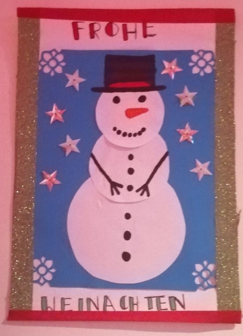 Uczniowie klas siódmych i ósmych naszej szkoły realizowali projekt edukacyjny ,,Najpiękniejsza kartka bożonarodzeniowa z życzeniami napisanymi w języku niemieckim’’.