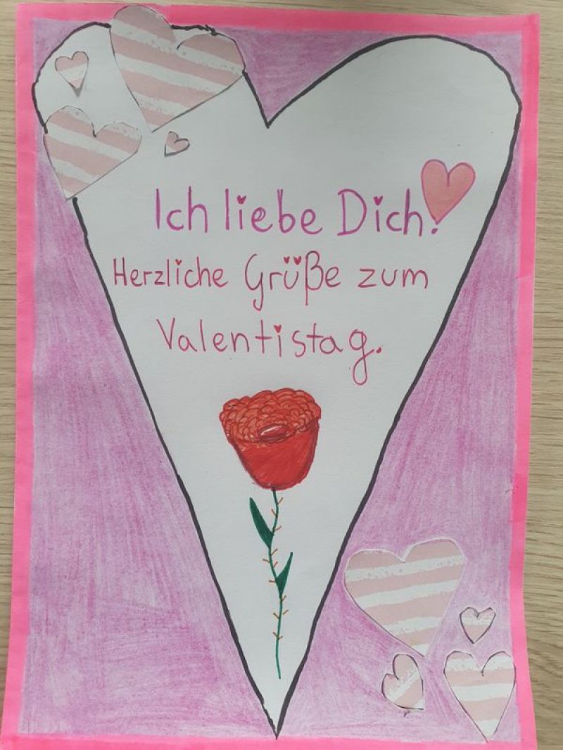 Walentynki stały się dla nas okazją do poznania słownictwa związanego z tą uroczystością, a także do wykonania kartek walentynkowych w języku niemieckim. Prezentujemy te najpiękniejsze…