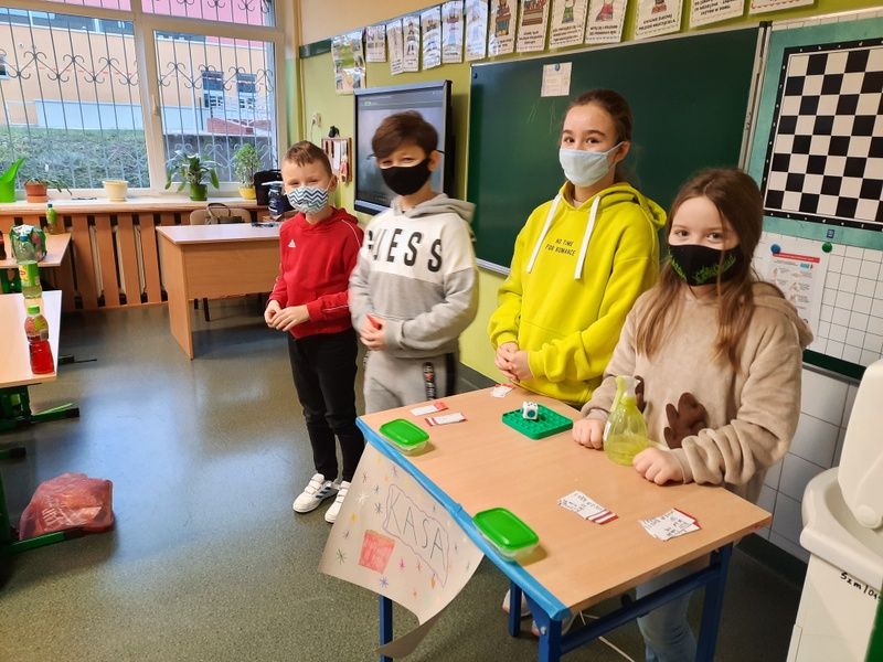 Jak to w kinie, była kasa biletowa i kupony na popcorn. Po zakupie biletów w kasie, mogliśmy udać się na stanowisko z popcornem i zrealizować nasze kupony. Potem przyszła kolej na zajecie miejsc w odpowiednich rzędach i oczekiwanie na seans filmowy. Tym razem był to film „ Biuro detektywistyczne Laseego i Mai. Pierwsze zlecenie”. Super się bawiliśmy.