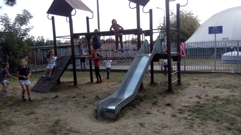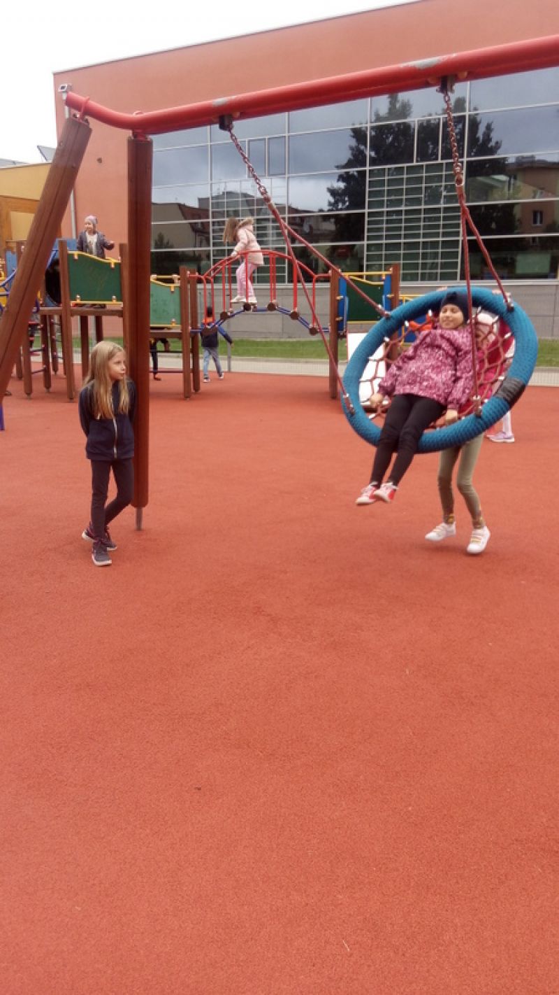 Kiedy pogoda dopisuje korzystamy ze szkolnego placu zabaw.