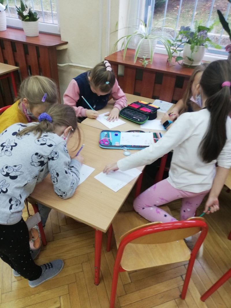 Gdy wymieniliśmy wszystkie rodzaje niepełnosprawności, okazało się, że każde z nas zna przynajmniej jedną osobę z niepełnosprawnością. Tego dnia był z nami chłopiec z niedosłuchem, który chętnie opowiadał o wyzwaniach, z jakimi boryka się na co dzień. Obejrzeliśmy film "Duże sprawy w małych głowach" na podstawie książki Agnieszki Kossowskiej, by uzmysłowić sobie, że niepełnosprawność to inne odczuwanie, widzenie rzeczywistości, zdobywanie wiedzy czy rozumienie świata. Wzięliśmy udział w dwóch eksperymentach, aby przekonać się, z jakimi trudnościami mierzą się osoby niewidome i niesłyszące. Na koniec wszyscy zastanawialiśmy się, czego potrzebują niepełnosprawni i jakie w przyszłości działania czy wynalazki mogłyby im pomóc godnie żyć. Nasze pomysły przenieśliśmy na papier. Wiele prac wiązało się ze zdobyczami techniki i medycyny - wymyślaliśmy dla nich specjalne nazwy. Kto wie, może kiedyś nasze propozycje zostaną zrealizowane i komuś naprawdę pomożemy? Tymczasem uczmy się empatii i szacunku dla odmienności, bo to są podstawy wszelkich działań wspierających.
