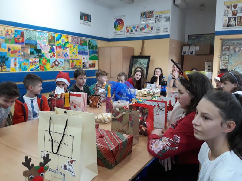 Klasa 7 d w dniu 6 grudnia urządziła Mikołajki klasowe. Zabawa polegała na kupieniu jak najbardziej zabawnego prezentu za niewielką sumę pieniędzy oraz jak najciekawszym własnoręcznie wykonanym opakowaniu. Zwycięzcy otrzymali po czekoladowym Mikołaju. Uczniowie wykazali się kreatywnością, umiejętnością poszukiwań ciekawych rzeczy i dużym poczuciem humoru. Niektórzy wraz z Rodzicami upiekli ciastka na imprezę – dziękujemy Rodzicom za poświęcony czas.