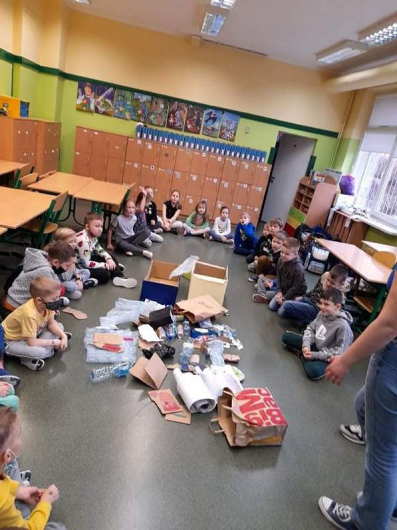 Powyższymi zagadnieniami zainteresowali się uczniowie klasy 7b, którzy w dniach 12,13,18 stycznia 2022r. postanowili zorganizować i przeprowadzić „Eko zajęcia” dla swoich młodszych koleżanek i kolegów z klas 0-3. Najmłodsi wychowankowie naszej Szkoły wzięli udziału w wielu interesujących atrakcjach o szeroko rozumianej tematyce ekologicznej. Rozwiązywanie „eko krzyżówek”, nauka segregowanie śmieci do odpowiednich pojemników, a także wspólne śpiewanie piosenek to tylko niektóre z wielu ciekawych zadań które zostały przygotowane przez starszych uczniów a które cieszyły się dużym zainteresowaniem ze strony ich młodszych kolegów. Dziękujemy naszym siódmoklasistom za zaangażowanie w ten projekt i chęć szerzenia edukacji ekologicznej bo przecież wszyscy dobrze wiemy, że „czym skorupka za młodu nasiąknie…”.