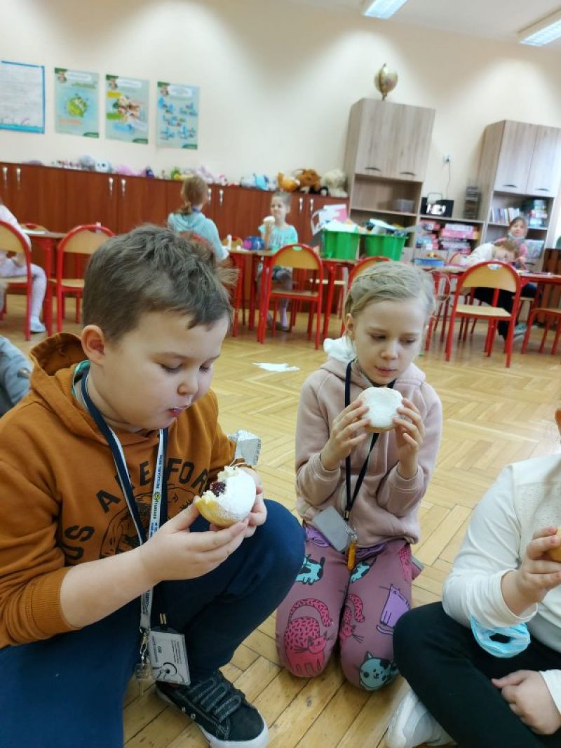 Dziś możemy w tym dniu objadać się do woli, pączkami i faworkami w niezliczonych ilościach. I tak spędziliśmy ten dzień w naszej świetlicy.