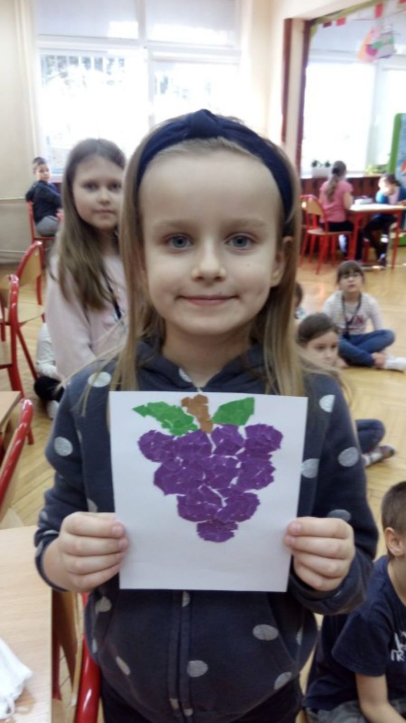 Na koniec wykonaliśmy pracę plastyczną – kosz z owocami (wydzieranka z papieru).