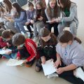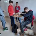 Uczniowie dziewięciu klas mieli okazję uczestniczenia w spotkaniu z niezwykłym młodym człowiekiem p. Mateuszem Pawłowskim z psem przewodnikiem Bezą. Autorem projektu skierowanego do dzieci i młodzieży mającym na celu popularyzację wiedzy na temat funkcjonowania osób niewidomych w społeczeństwie. Uczniowie dowiedzieli się w jaki sposób wygląda edukacja, praca zawodowa, szkolenie psów przewodników , życie codzienne także właściwych sposobów zachowania wobec osoby niewidomej. Dzieci mogły doświadczyć rysunków wykonanych dla osób niewidomych, usłyszeć i zobaczyć w jaki sposób wygląda czytanie, dotknąć czytanej książki. Serca wszystkim skradła niezawodna Beza, pracująca z p. Mateuszem. Wszyscy uczniowie z wielkim zainteresowaniem uczestniczyli w spotkaniu, zadawali rzeczowe i ciekawe pytania. Na koniec otrzymali na pamiątkę swoje imiona zapisane w alfabecie Braille’a. W spotkaniu wraz z nauczycielami wzięli udział uczniowie klas: 1a, 1c, 4b, 4c, 4e, 5c, 7b, 7c, 7f.