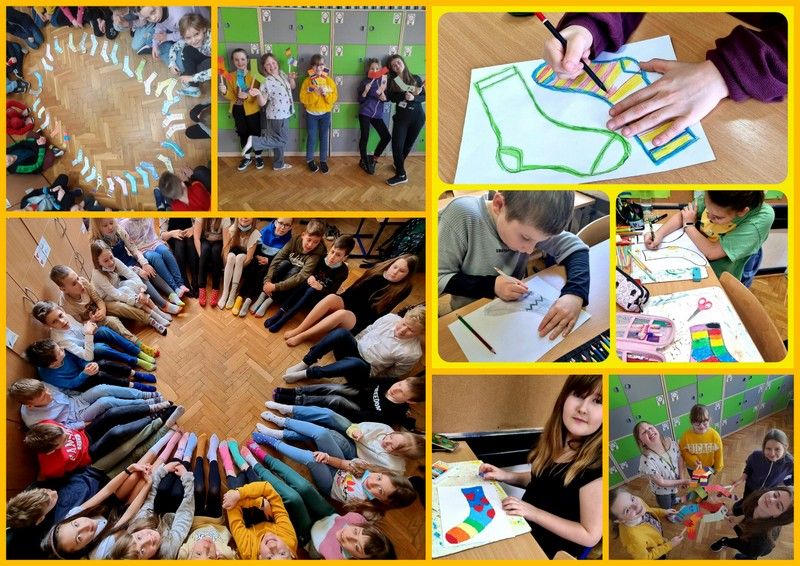 Na zakończenie zajęć uczniowie klas 0-3 wykonali symbol solidarności, kolorowe skarpetki nie do pary. Dzięki temu wyrazili tolerancję, zrozumienie i okazali wsparcie dla osób z Zespołem Downa. Uczniowie wraz ze swoimi symbolami uczestniczyli w „Pochodzie kolorowej skarpetki”, który przeszedł ulicami Legionowa. W marszu uczestniczyli przedstawiciele władz samorządowych i organizacji pozarządowych, dzieci, młodzież i dorośli. Dzieci w geście solidarności z osobami z Zespołem Downa na marsz wzięli najbardziej znany symbol ludzi z trisomią, kolorowe skarpetki nie do pary. Razem z uczestnikami pochodu wypowiadaliśmy różne hasła, m. in. „Wszyscy różni, wszyscy równi”, „Mamy takie same serca”.
